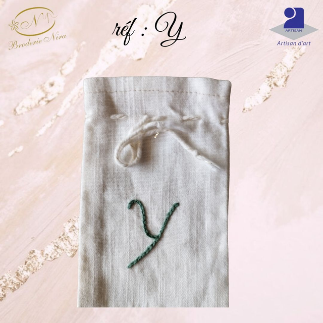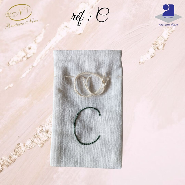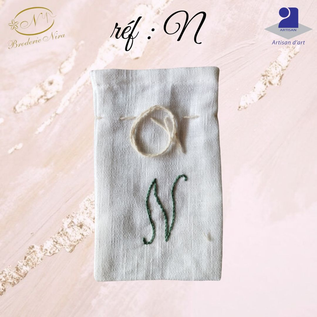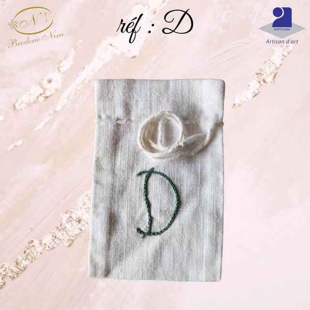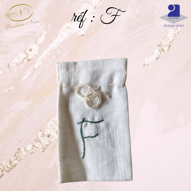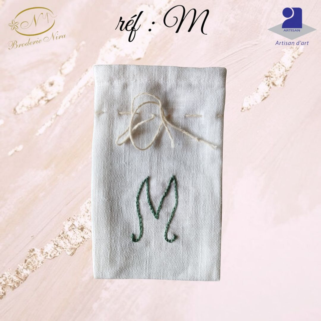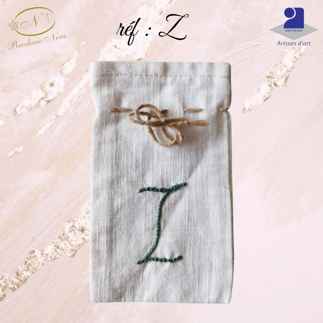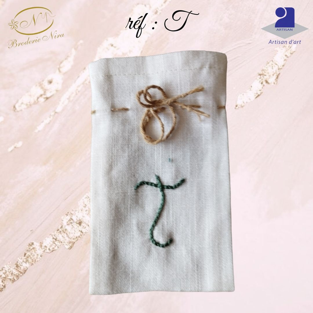 Pochon en Lin Naturel – Initiale Brodée Main – Artisanat d'Art de la Côte d'Azur