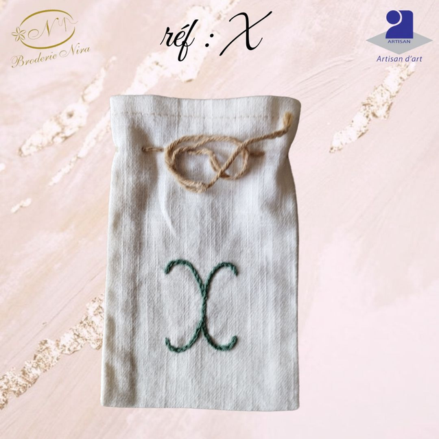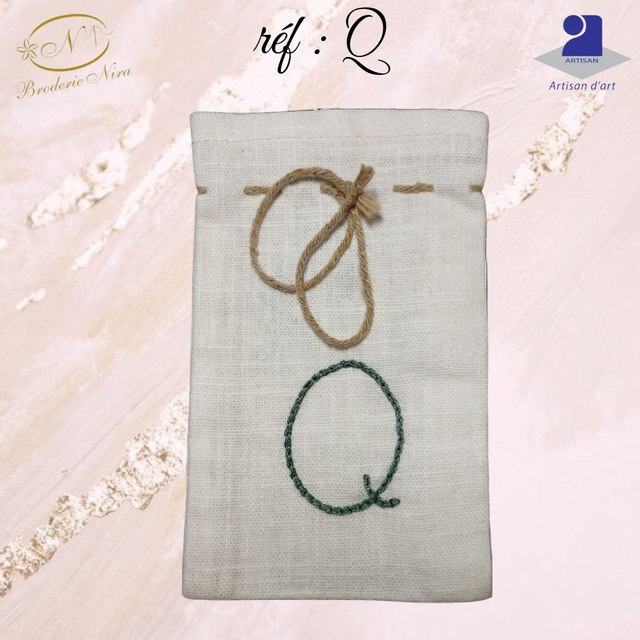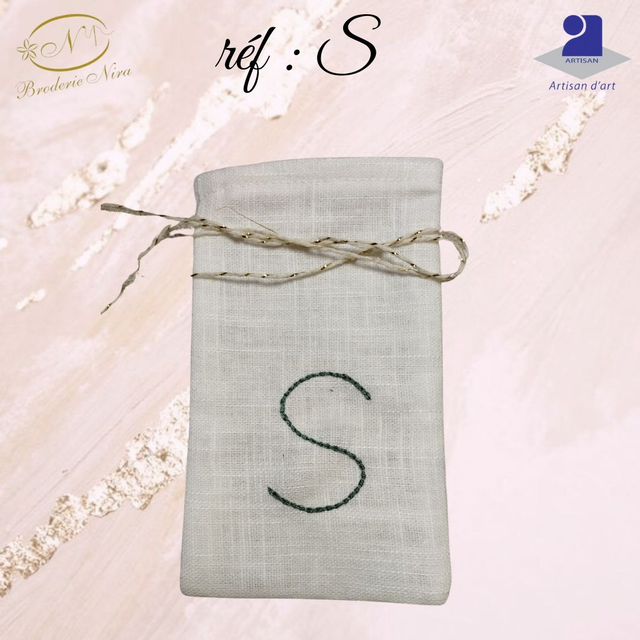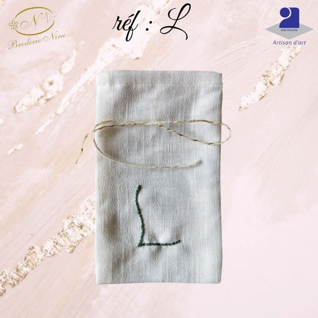 Chaque pochon est confectionné avec soin dans un lin de qualité et arbore une initiale délicatement brodée à la main, faisant de chaque pièce un objet unique et personnel.
