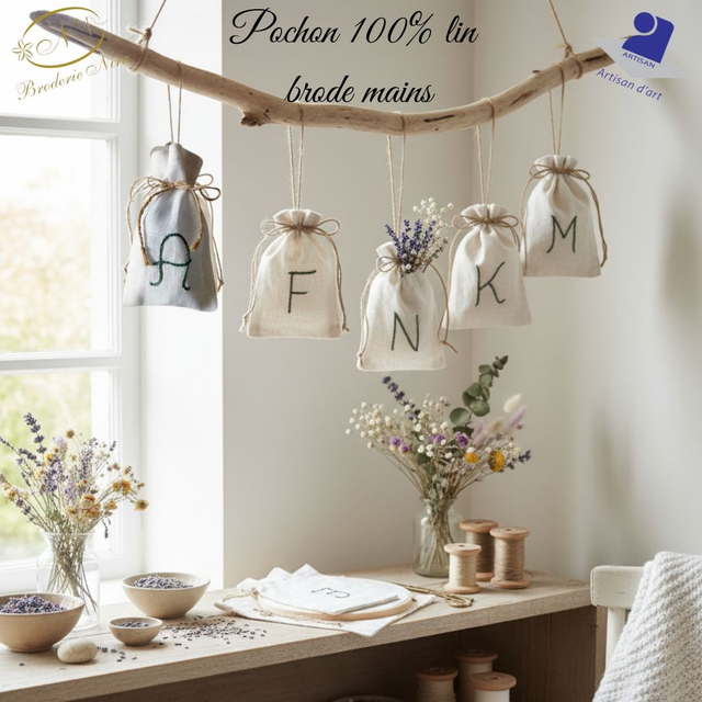 Découvrez nos ravissants Pochons en Lin Brodés Main, une création qui incarne le charme et l'authenticité de l'artisanat français.