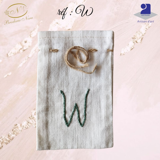 Pochon en Lin Brodé Main, Initiales Personnalisées
