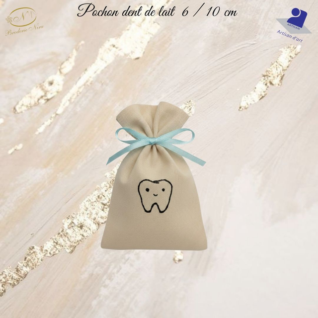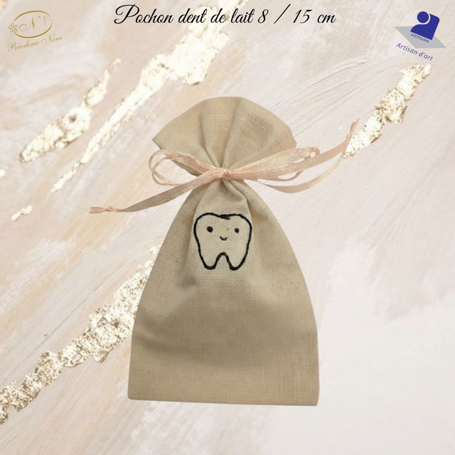- Orné d'une broderie main représentant une petite dent, réalisée avec tout le soin de l'artisanat d'art.