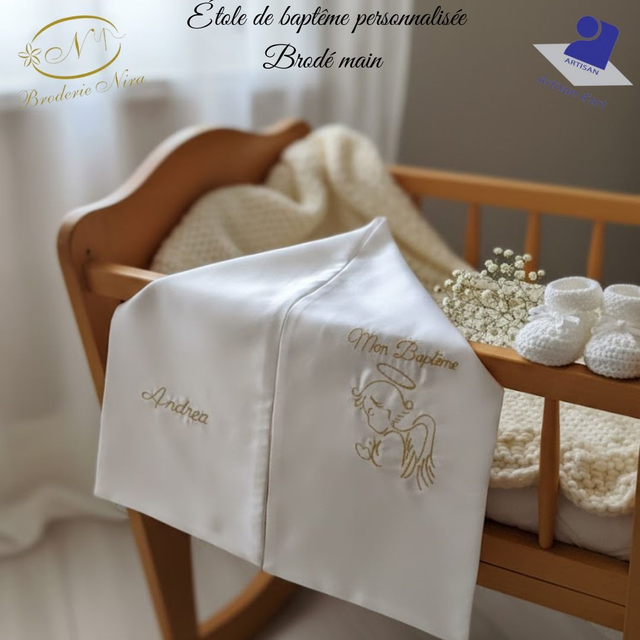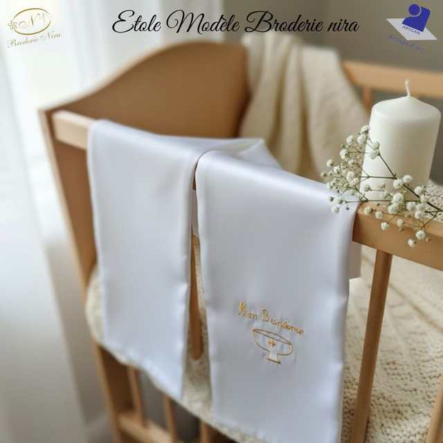 2. Broderie d’Art Artisanale : Chaque motif, chaque initiale ou chaque date est brodé avec une finesse extrême, apportant une touche de délicatesse unique que seule la main peut offrir.