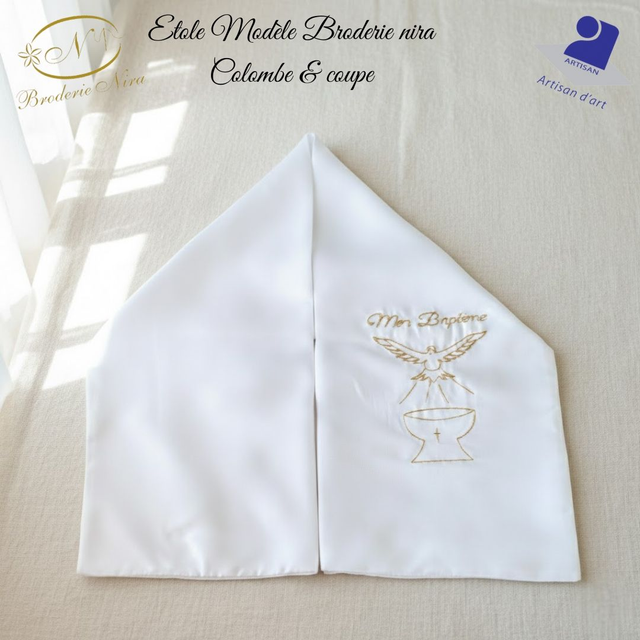 Nos étoles sont entièrement conçues et brodées à la main pour capturer l’essence de votre journée spéciale.