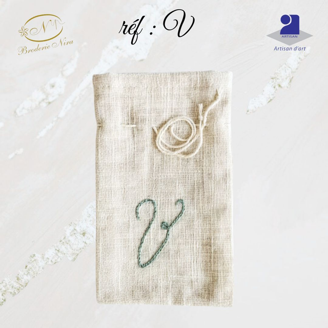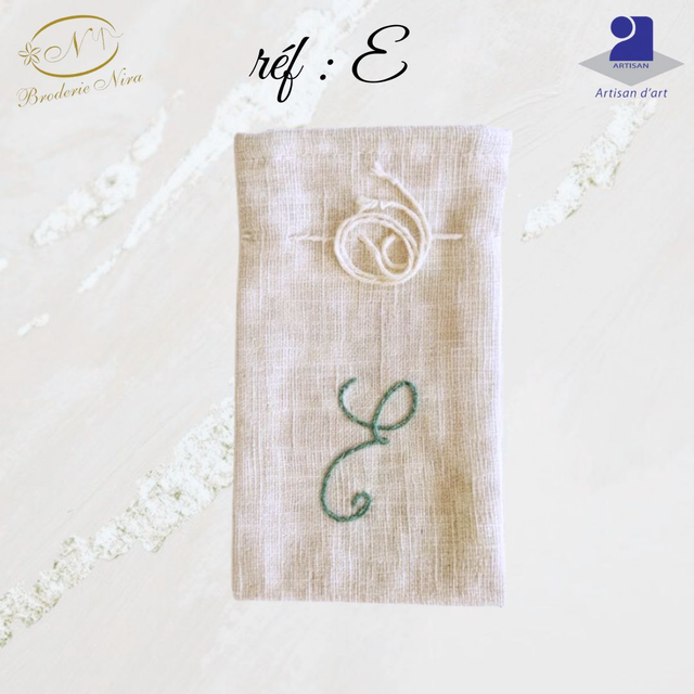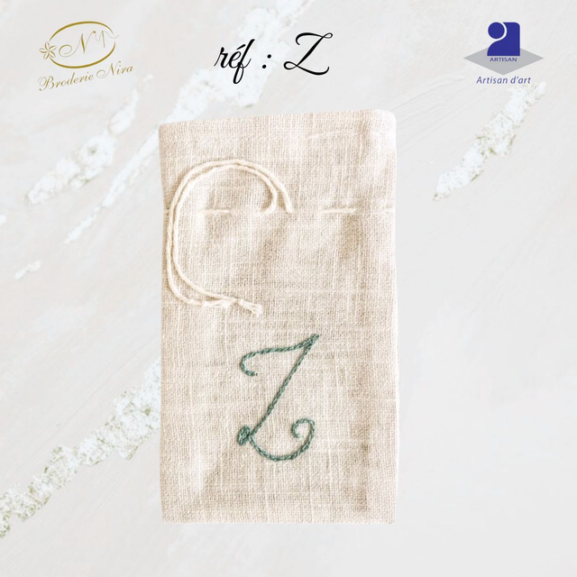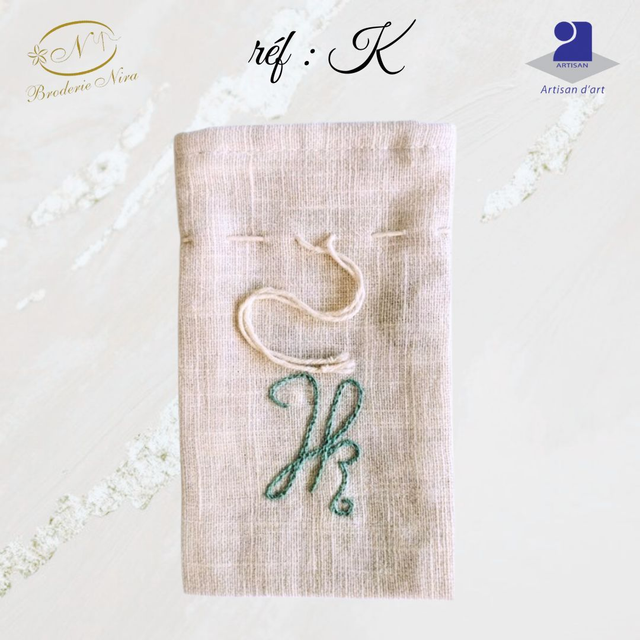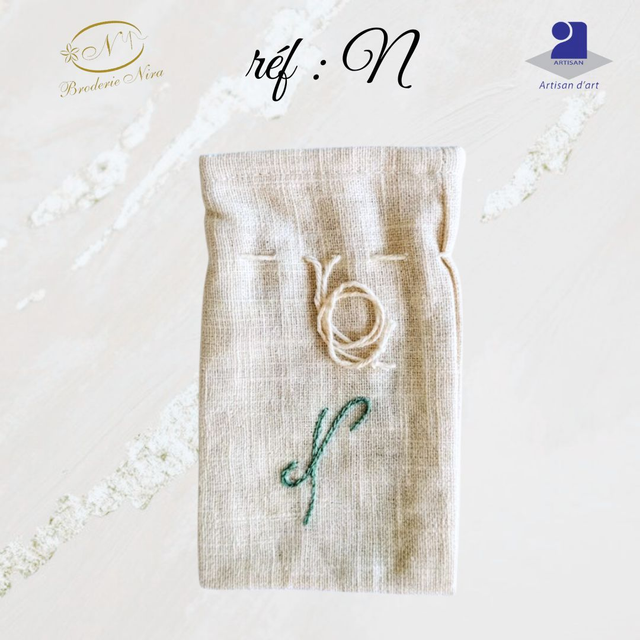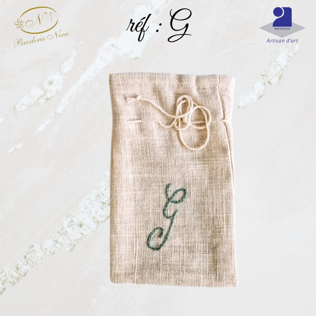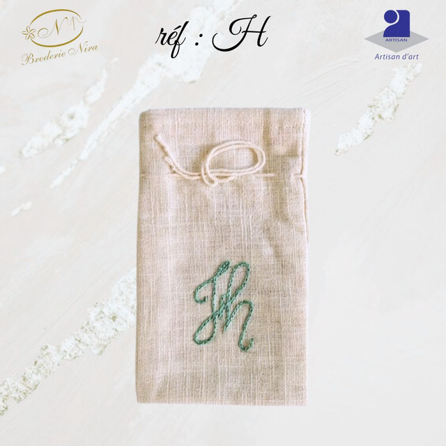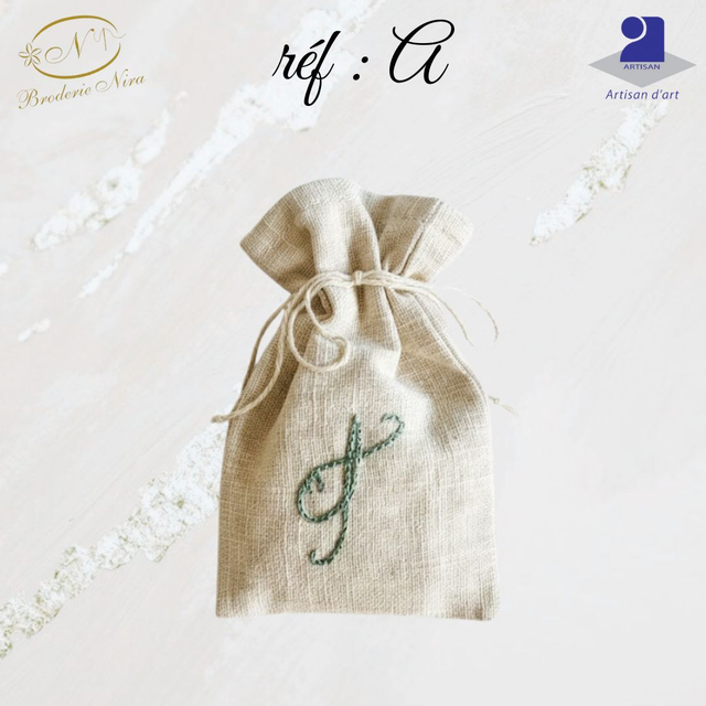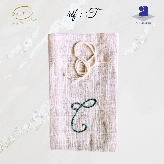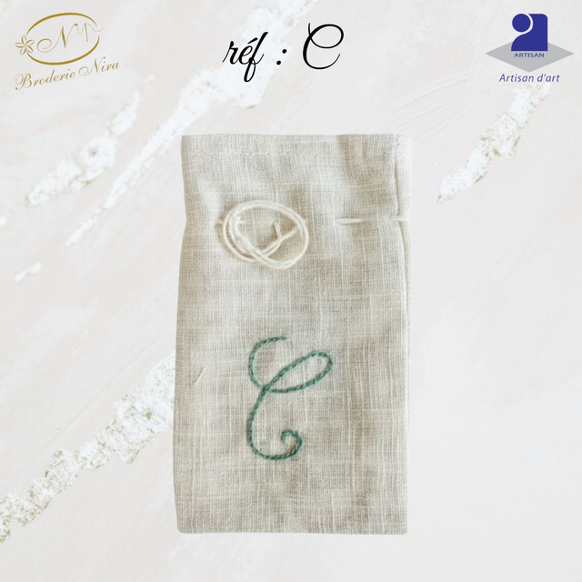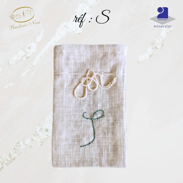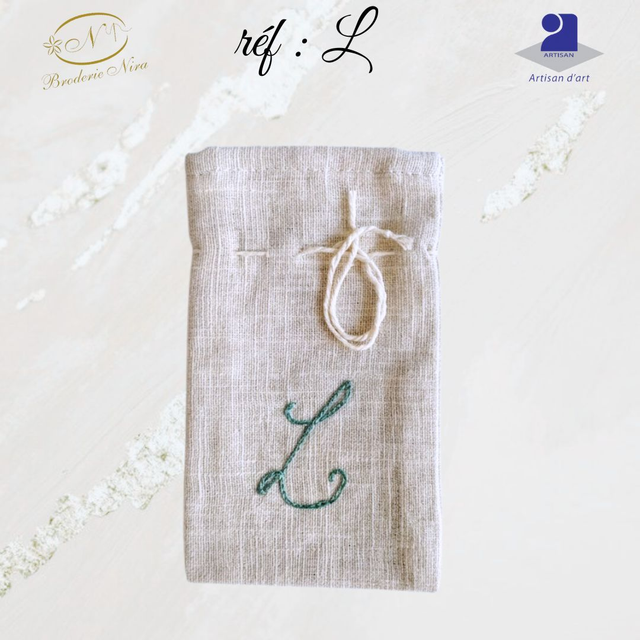 Pochon en Lin Brodé Main – Initiales & Trésors – Artisanat d'Art