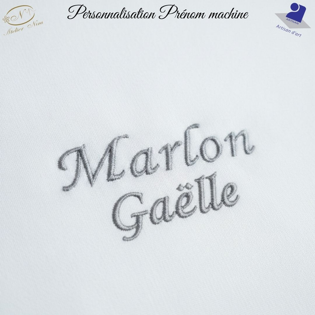 - Personnalisation choisir le nombre de lettre / deux finitions Broderie main ou machine
