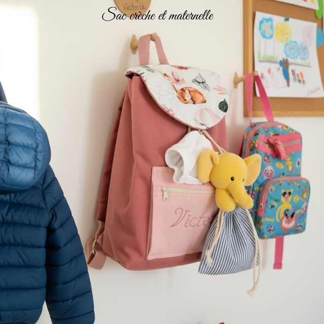 Pour transporter le doudou, les couches et le carnet de liaison sans rien oublier, voici notre sac à dos modulable !